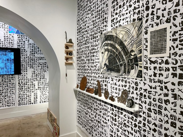 Mixed media drawings, prints, found objects