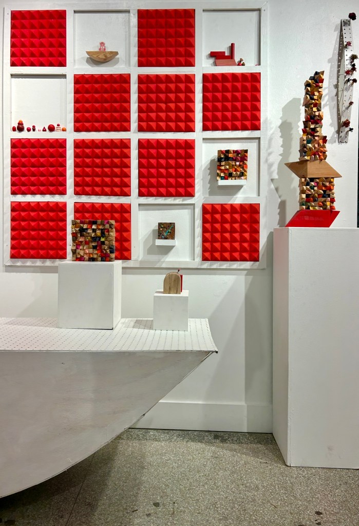 Mixed media drawings, objects found on walks, pine, poplar, pecan, pegboard